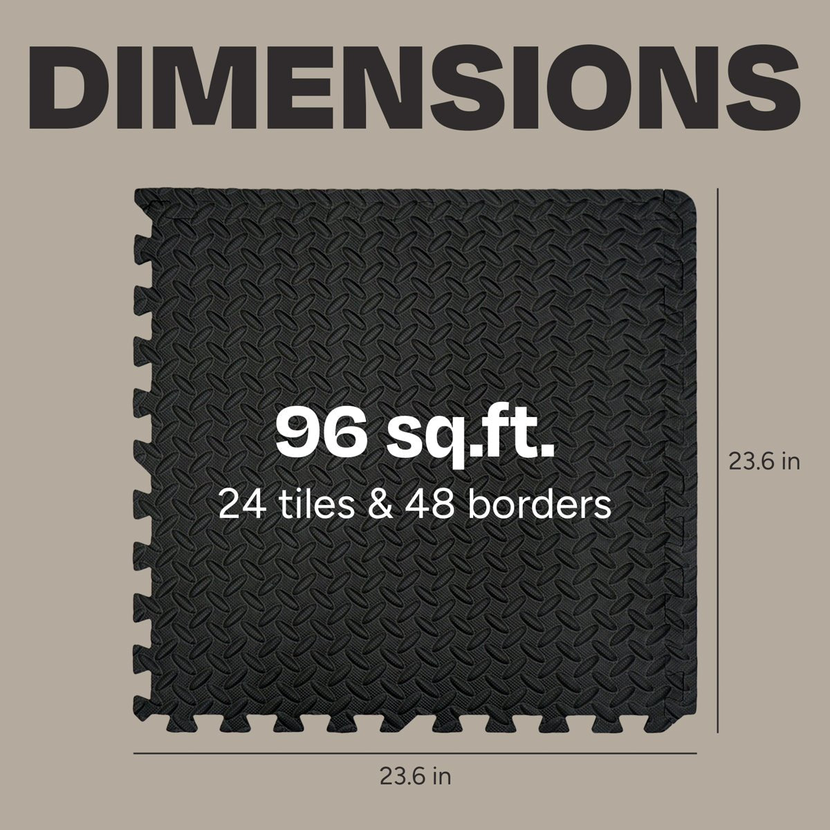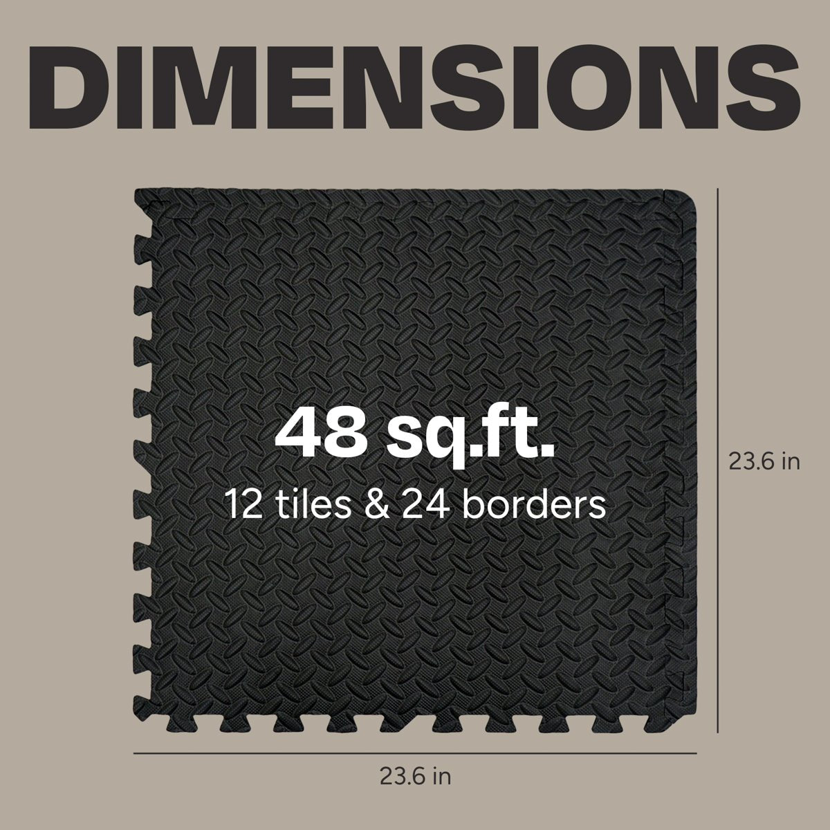 Available in three convenient packs, you can choose the ideal configuration for your needs: 24 square feet with 6 interlocking mats and 12 borders, 48 square feet with 12 interlocking mats and 24 borders, or 96 square feet with 24 interlocking mats and 48 borders. Easy to set up with no tools or glue required.