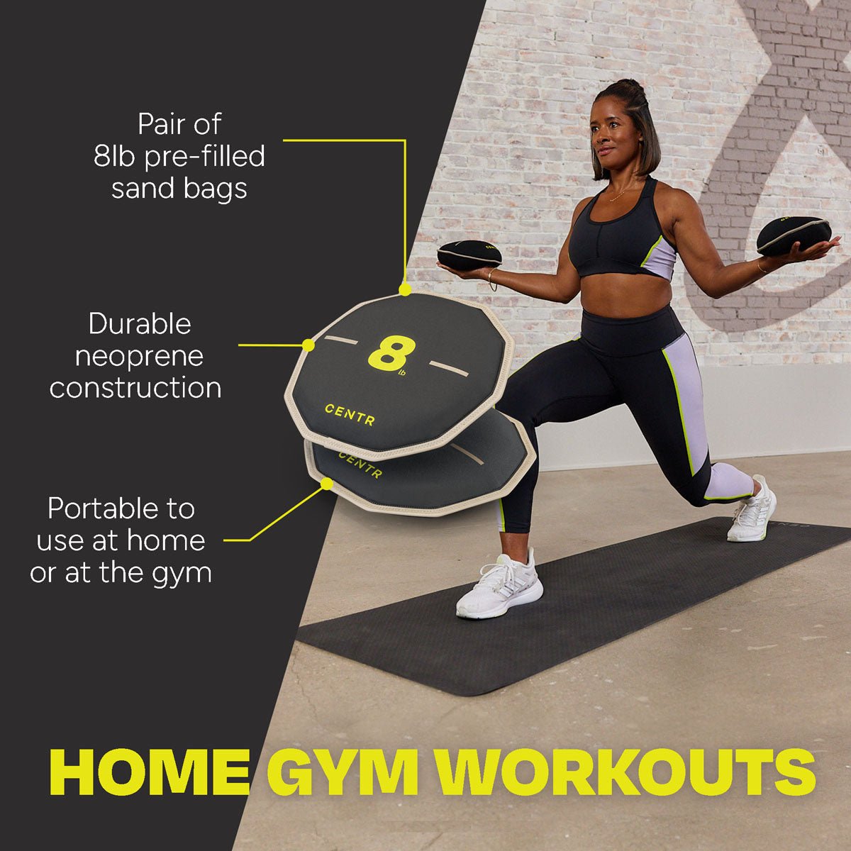 The Centr Sandbags (8 lb pair) are ideal for functional circuits, conditioning, and grip-strength exercises. With a unique form that challenges your grip strength during exercises, these sand bags provide an unparalleled training experience.