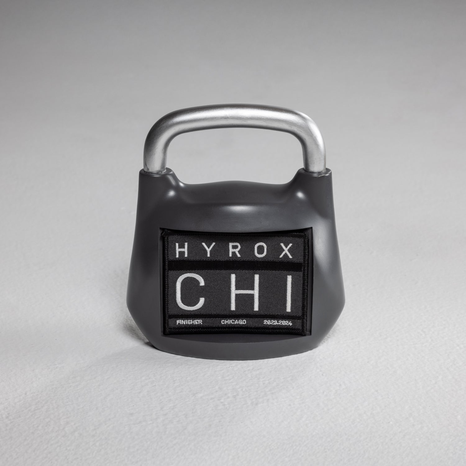What makes it uniquely yours? Each kettlebell includes velcro backing to securely attach your HYROX race patch—allowing you to collect and display your accomplishments with pride at every event. Whether you're crossing the finish line or cheering from the stands, this collectible is more than a memento—it's a symbol of your commitment, grit, and progress.