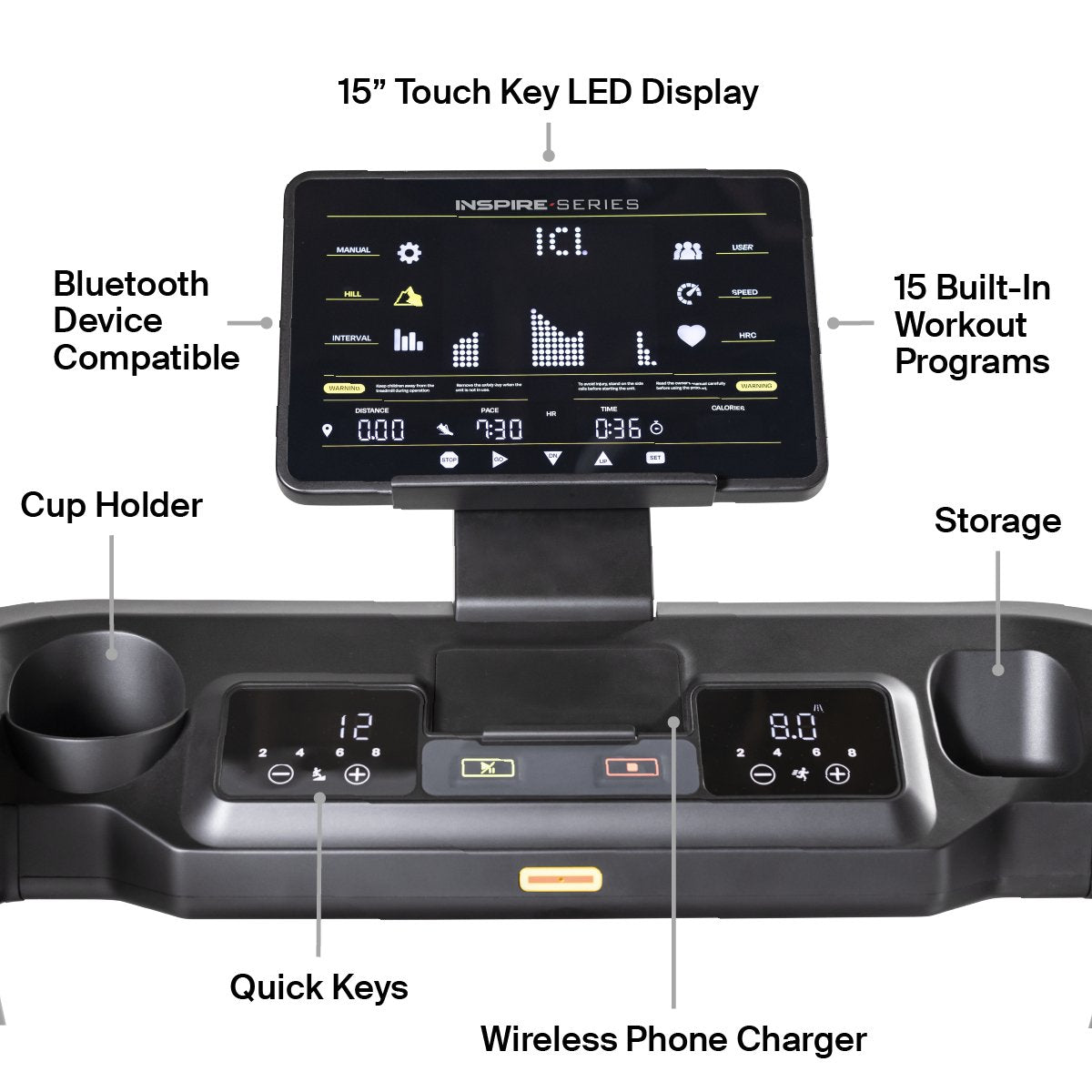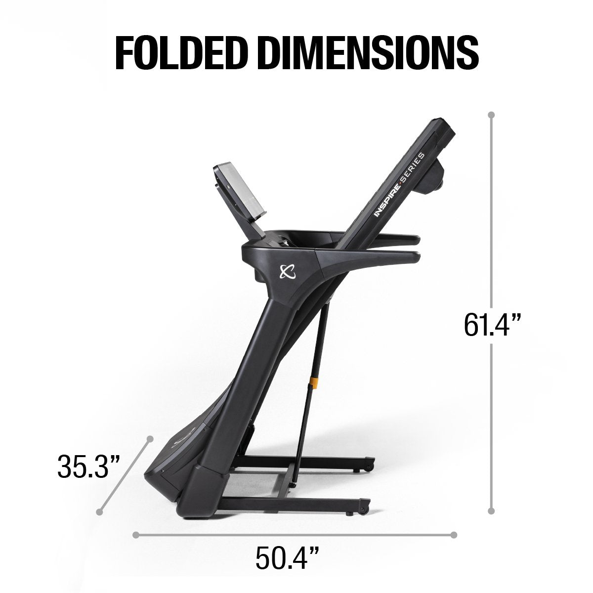 The Inspire Series T5 Treadmill is ideal for interval sprints, long-distance runs and hill workouts. Built for durability mile after mile, this treadmill features our Cloud Cushion Technology which minimizes impact, reduces shock, and boosts stability for unparalleled comfort and support. The T5 treadmill is equipped with a 20” x 60” running surface, Natural Stride Technology, that adjusts the speed of the tread to your running pace, and a sturdy frame that folds upright for easy storage.