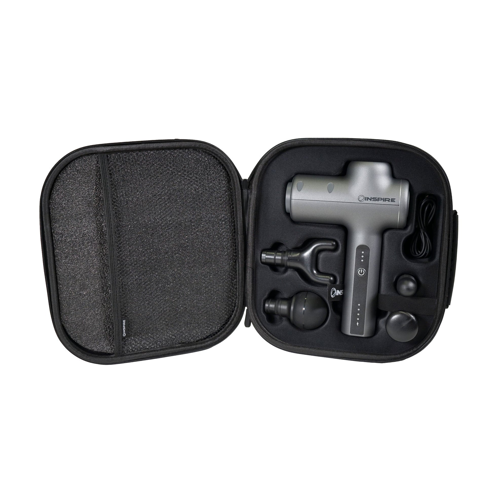 The Recovery Gun releases tension, stimulates circulation & speeds up muscle recovery. Four unique attachments let you get deeper into each muscle, combined with 4 different massage speeds it helps you to naturally relieve soreness. The compact size and ergonomic grip make it easy to reach your entire body.